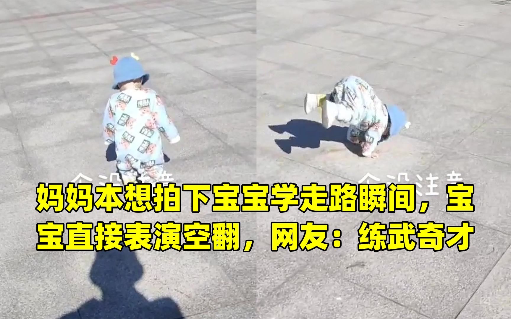 妈妈本想拍下宝宝学走路瞬间,宝宝直接表演空翻,网友:练武奇才