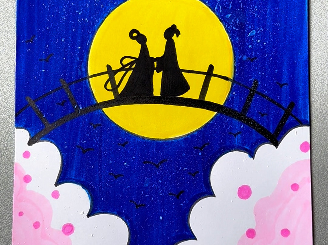丙烯马克笔简单画国风创意画,一学就会#国风古韵[话题]# #古风[话题]# #创意美术[话题]# #一起学画画[话题]#