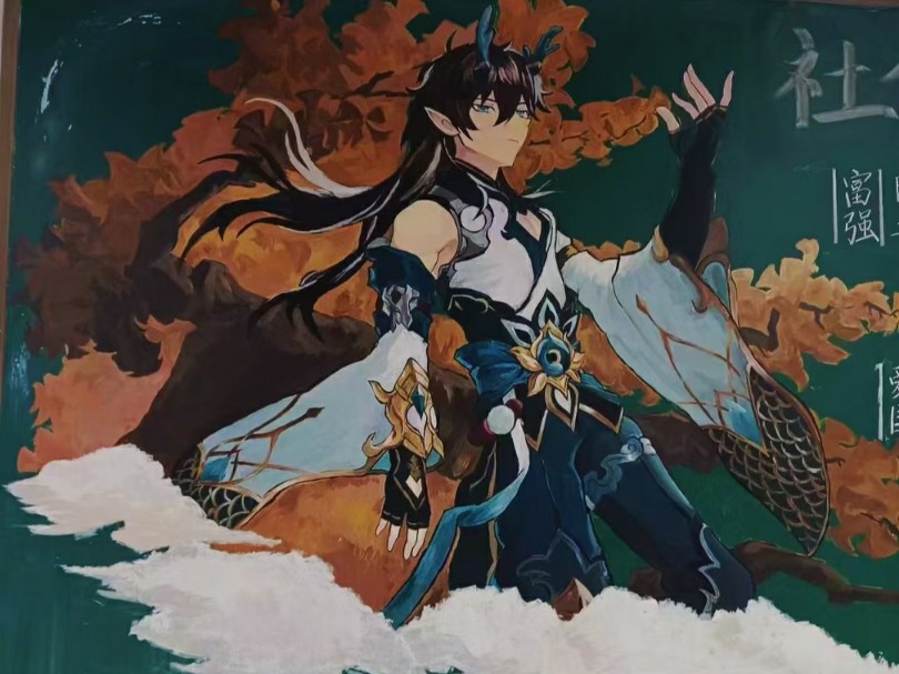 画了12小时⚡️新学期在班级后面画个胡桃不过分吧(づ ●─● )づ