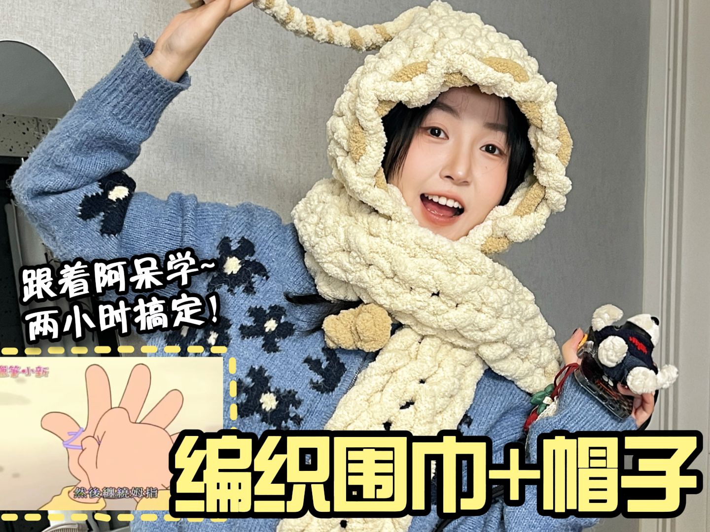 太牛了!闺蜜跟着阿呆做了围巾帽子,超简单!