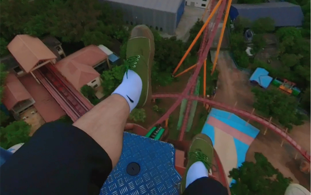 挑战国内最刺激最恐怖的过山车,最怕这种不压肩双脚悬空还往前又往后高空翻转的过山车,人在前面飞魂在后面追,你们敢玩吗