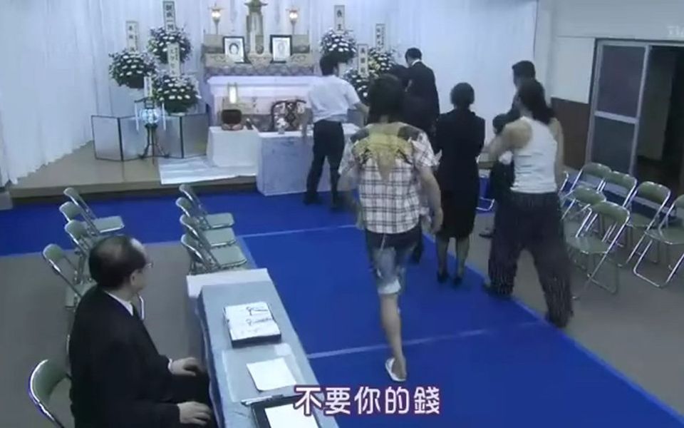 两个男人把女人小孩推进大桶里,等所有人都爬进去时,从外面迅速盖上桶盖