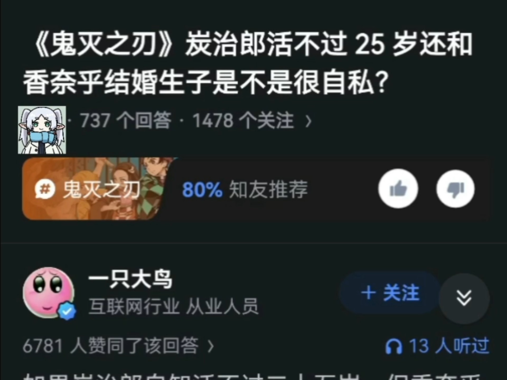 《鬼灭之刃》炭治郎活不过 25 岁还和香奈乎结婚生子是不是很自私?