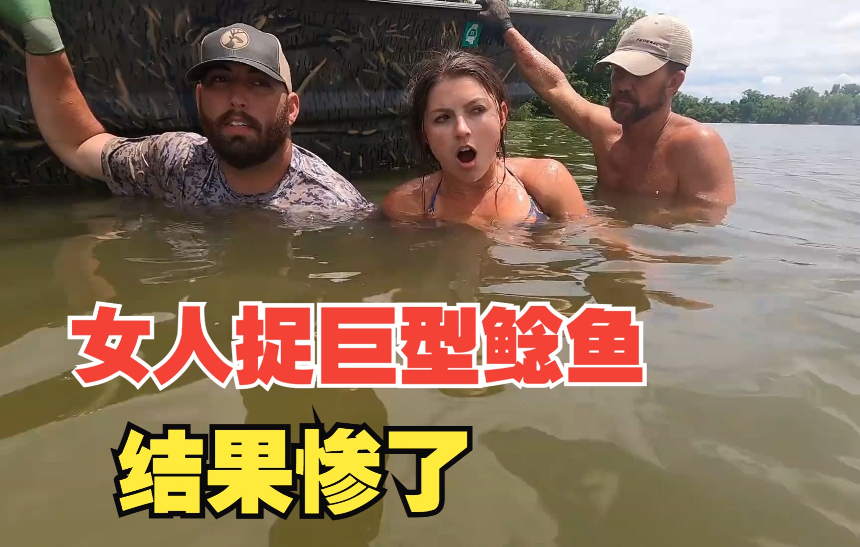 漂亮的女猎人徒手捉巨型鲶鱼,结果惨了