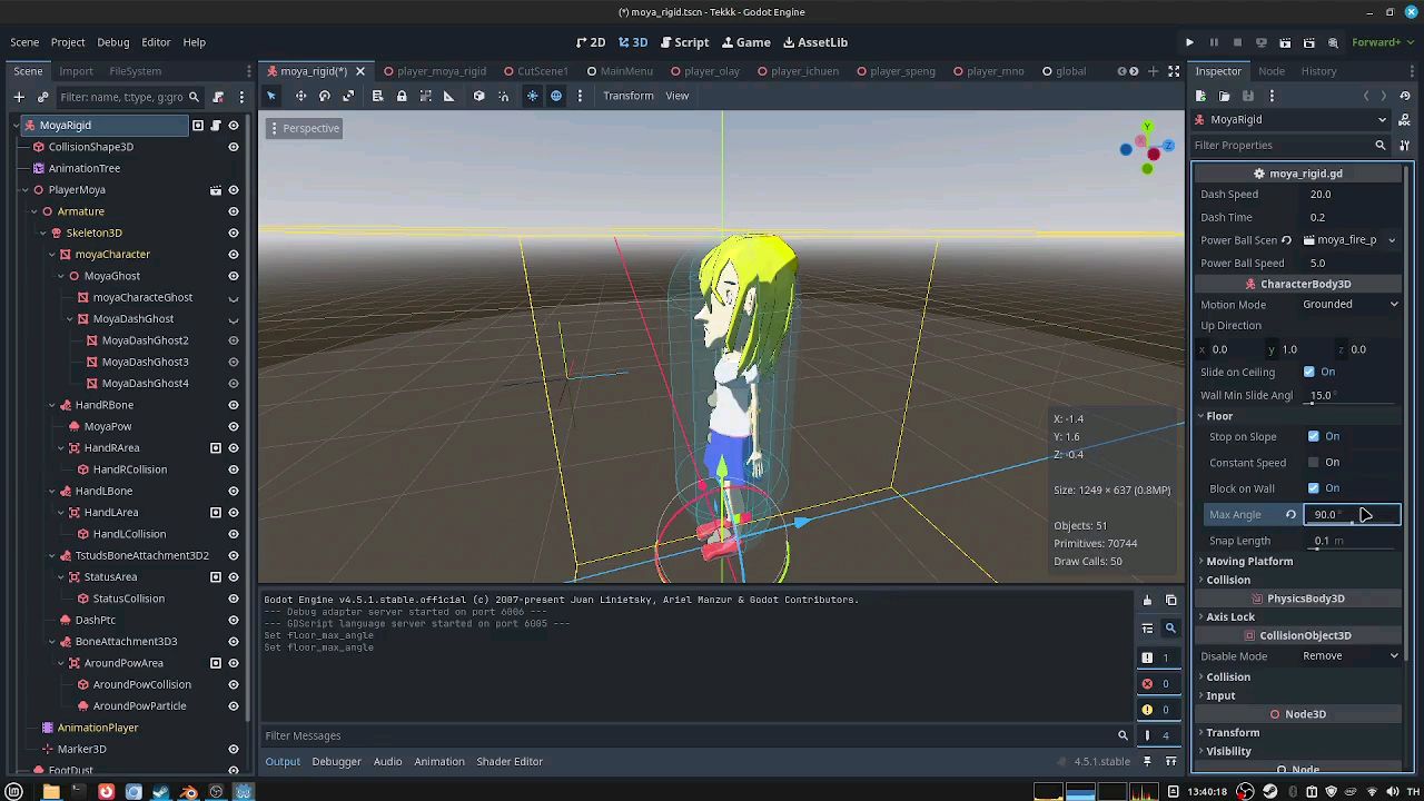 我只是想调整地面的角度,让角色可以走过不太高的高度差,而不需要添加倾斜地面的碰撞。我把角度调得太高了,测试游戏时角色居然可以抓住我发射的能量球并站在上面。
