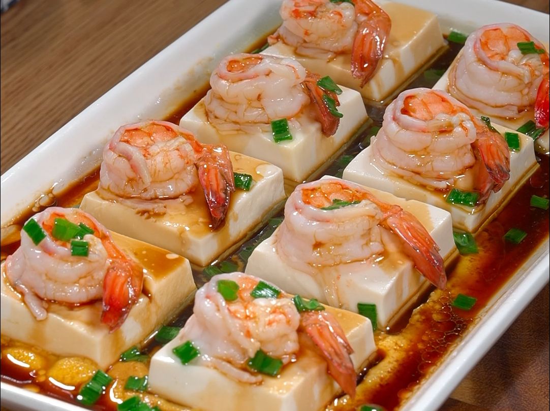 虾仁豆腐把大虾放进豆腐蒸一蒸,出锅就是一道逢年过节必吃的美食,做法简单,营养美味